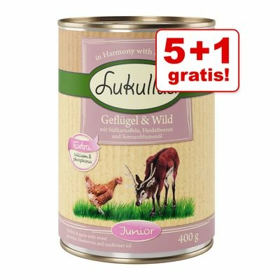 Nur für kurze Zeit: Beim Kauf von 5 x 400 g Lukullus Naturkost Adult & Junior Mixpaket Ihrer Wahl erhalten Sie eine 400g-Dose gratis dazu! Feine Nassfutter-Naturkost aus naturbelassenen Zutaten jetzt testen!