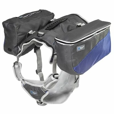Das multifunktionale Hundegeschirr ist mit einem optionalen Mesh-Futter sowie einem verstaubaren Regenschutz ausgestattet. Das wasserabweisende Material wirkt klimakontrollierend. Eine der beiden abnehmbaren Taschen ist isoliert, um Getränke und Snacks kühl zu halten – so kann einer erfrischenden Wanderpause nichts mehr im Weg stehen.