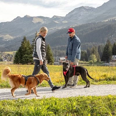 - 2 Möglichkeiten zur Leinenbefestigung: zum Führen und Ziehen, geschlossene Sicherheitsösen