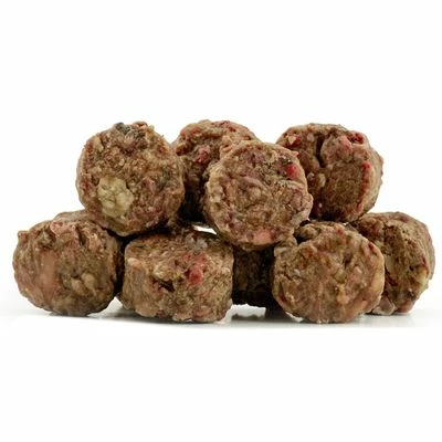 Fleischreiches Futtermenü für Hunde, mit Rind, Nuggets mit 100% natürlichen Zutaten, mit reinem Muskelfleisch, Innereien & Knochen, ergänzt mit Gemüse und Ölen, getreide- und glutenfrei, tiefgefroren
