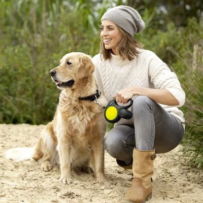 - Schwarz-neongelbe Roll-Leine mit 5 Metern Reichweite