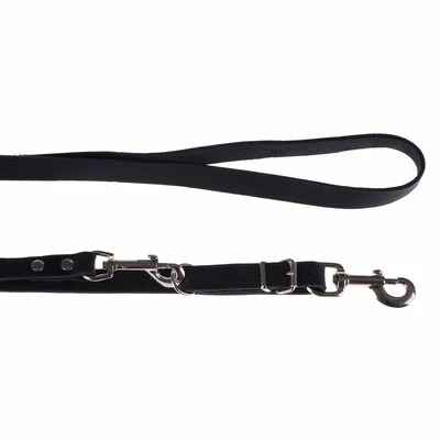 Leine für Hunde, 3fach verstellbar, rein pflanzlich gegerbtes & schwarz durchgefärbtes Material, mit praktischen Karabinerhaken & oberflächenveredelten Beschlägen, weich & gefettet, aus Rindsleder