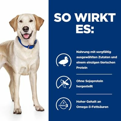 Hill’s Prescription Diet d/d Food Sensitivities Hundefutter mit Ente & Reis auf einen Blick: