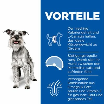 Das Light-Hundefutter unterstützt dank seiner kalorienreduzierten Zusammensetzung die Gewichtskontrolle und sorgt für ein angenehmes Sättigungsgefühl. Es punktet außerdem mit einem köstlichen Geschmack, so dass sich Ihr Hund nach der Mahlzeit rundum satt und zufrieden fühlt. Hill’s Science Plan Mature Adult 7+ Small & Mini Light mit Huhn enthält Vitamin E und Omega-6-Fettsäuren, die zu normaler Haut und schönem Fell beitragen können. Eine spezielle Antioxidantien-Verbindung kann zudem das körpereigene Immunsystem unterstützen.