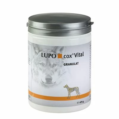 LUPO cox Vital ( zuvor LUPOSAN COX) ist ein schonend im Kaltpressverfahren hergestelltes Granulat, welches gezielt als Ergänzungsfuttermittel für die besonderen Anforderungen von Hunden ab dem 6. Lebensmonat entwickelt wurde. Die spezielle Kombination von leicht verfügbaren Mikronährstoffen unterstützt auf natürlicher Basis viele Organe. Dadurch kann der gesamte Organismus gefördert werden.