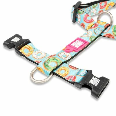- Farbenfrohes H-Geschirr mit Donuts-Motiven für kleine bis große Hunde