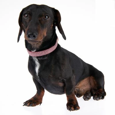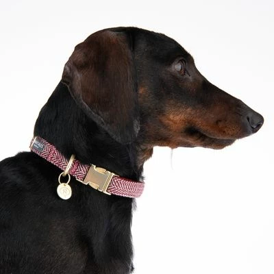 Geschmackvolles Halsband für Hunde, stufenlos verstellbar für perfekten Sitz, im optisch ansprechenden Fischgräten-Design, mit auffälliger Plakette und mattgoldenen Details, aus Polyester & Nylon