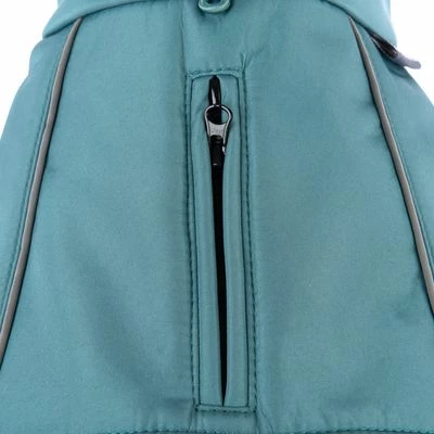 Wärmender Softshell-Wintermantel für Hunde, Obermaterial aus wasserabweisendem Polyester, innen mit kuscheligem Fleece gefüttert, modisches Stepp-Design, reflektierende Details, Farbe: türkis