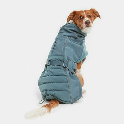 Die türkisfarbene Jacke ist im modischen Stepp-Design gefertigt und mit reflektierenden Details für zusätzliche Sichtbarkeit im Dunkeln versehen. Elastische Stoff-Einsätze an den Schultern halten einerseits diese großen Muskelpartien warm und schränken deinen Hund andererseits nicht in seiner gewohnten Bewegungsfreiheit ein.