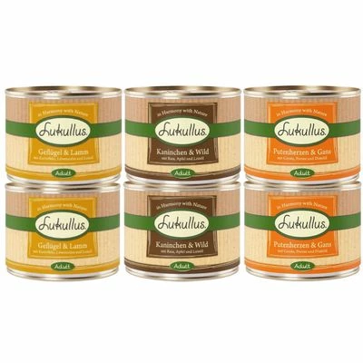 Lukullus Nassfutter-Naturkost für Feinschmecker-Hunde, mit liebevoll ausgesuchten Zutaten, frischem Fleisch, Gemüse, Obst & wertvollen Ölen. Naturbelassene Rezepturen in den klassischen Sorten im Mix testen!
