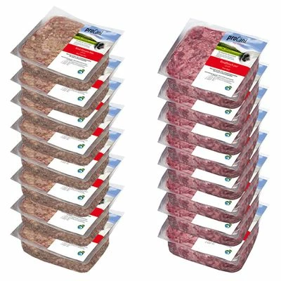 Im proCani Rind-Paket 60 x 400 g ist enthalten: