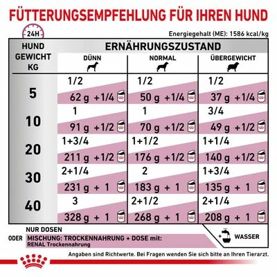 Das diätetische Nassfutter zeichnet sich durch eine energiereiche Zusammensetzung aus, so dass kleinere Portionen ausreichen, um Ihren Liebling mit genügend Energie zu versorgen. Royal Canin Veterinary Canine Renal Nassfutter ist besonders aromatisch und appetitlich angerichtet. So werden auch Hunde mit krankheitsbedingt vermindertem Appetit zum Fressen angeregt.