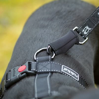 - Geschützter Karabiner: bedeckt mit Neopren-Schlauch, schützt den Rücken des Hundes und verringert störende Klappergeräusche während des Gehens