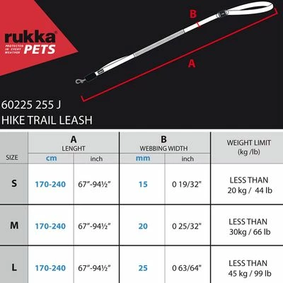 Wenn dein Hund und du sich gerne gemeinsam sportlich betätigen oder du ihn gerade trainierst, ist die Rukka® Wander-Trainingsleine der perfekte Begleiter: Sie ist stufenlos verstellbar und bietet so in jeder Situation die ideale Länge. Sollte dein Vierbeiner einen plötzlichen Zug auf die Leine ausüben, wird dieser durch den Bungee-Zug-Mechanismus sofort abgefedert. Die Handschlaufe ist angenehm weich mit Neopren gepolstert, lässt sich ebenfalls verstellen und kann auch bequem umgeschnallt werden.