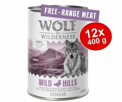 Verantwortungsvoll & schmackhaft: Erhältlich ist Wolf of Wilderness Senior „Freiland-Fleisch“ 12 x 400 g in den Sorten: