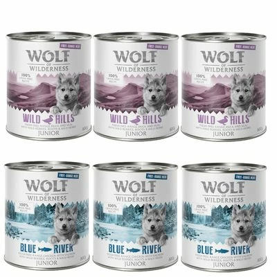Verantwortungsvoll & schmackhaft: Erhältlich ist Wolf of Wilderness Junior „Freiland-Fleisch“ 6 x 400 g in den Sorten:
